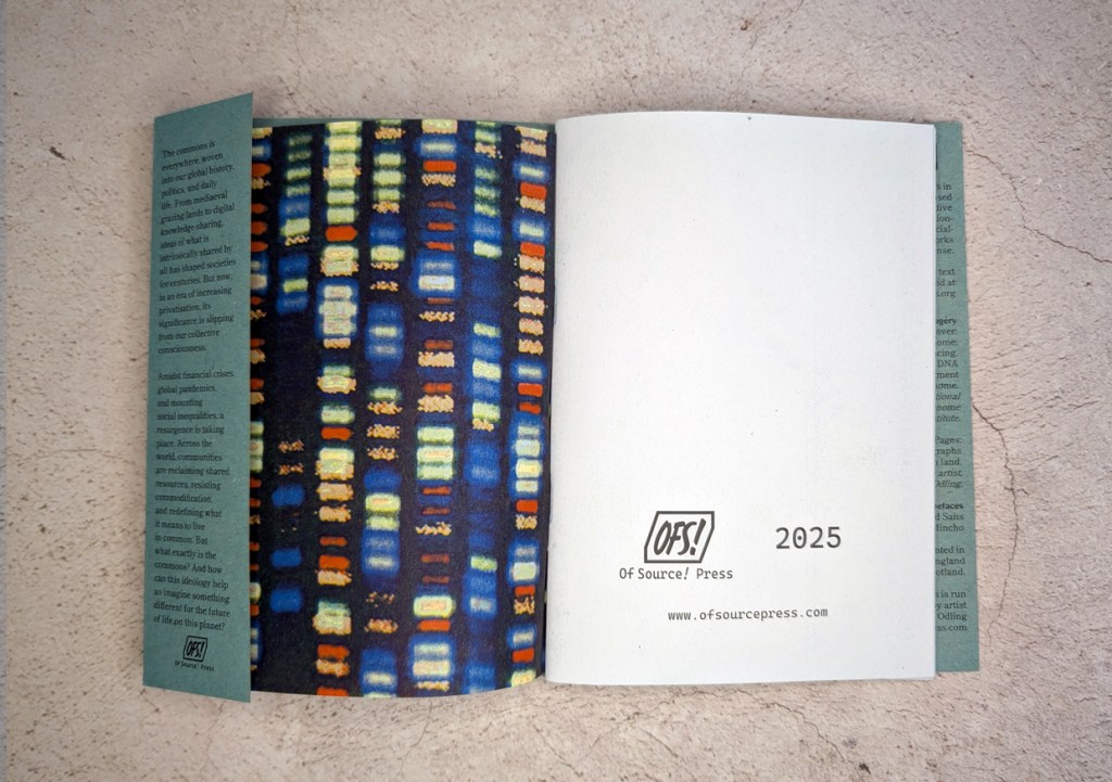 This limited edition of 50 was published in 2025. It includes images of the Human genome sequencing and collaged photographs of common land; representing the past and future commons.
